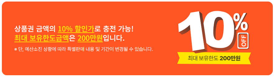 (예) 90만 원을 충전하면 100만 원을 쓸 수 있어 10% 할인 받을수 있습니다)